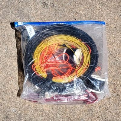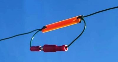 The linked dipole is the easy part! You will need to attach two wire for the 40m dipole that are about 32' long. But first, you will need to remember that with the 60m legs linked, the overall length of this dipole will be about around 42' long each. And after adding on 5' to 7' of paracord, you will be approaching about 50' total length. So I added long enough cord to each leg so that while tuning the 40m legs, the overall dipole was guyed at around the same point on the ground that it would be guyed at if it were complete and linked for the longer 60m antenna. I tuned the 40m legs first for the center frequency I wanted, 7.225 MHz. Then I attached these SOTABeams linked dipole insulators. I love using these pieces as they extremely lightweight and very inexpensive. Then attach the remaining wire for 60m that will get you an overall length of about 43' for each leg. I use inexpensive automotive bullet connectors for all my antenna links. Attach, then connect the links, then tune the antenna for 60m channel 3. This tunes the antenna for the center of the band.