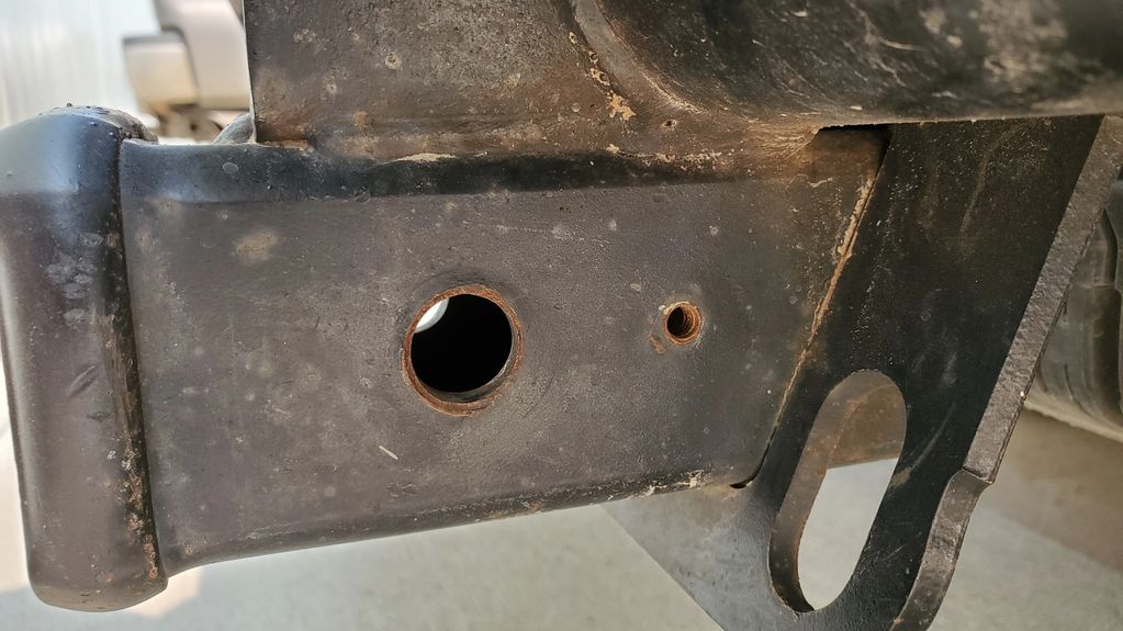 To the left of the hitch pin hole is where I ground off the paint to give the above mentioned grounding bolt a place to seat itself to bare metal. It also has the added benefit of keeping the hitch mount snug inside the receiver when I leave it in place while driving.